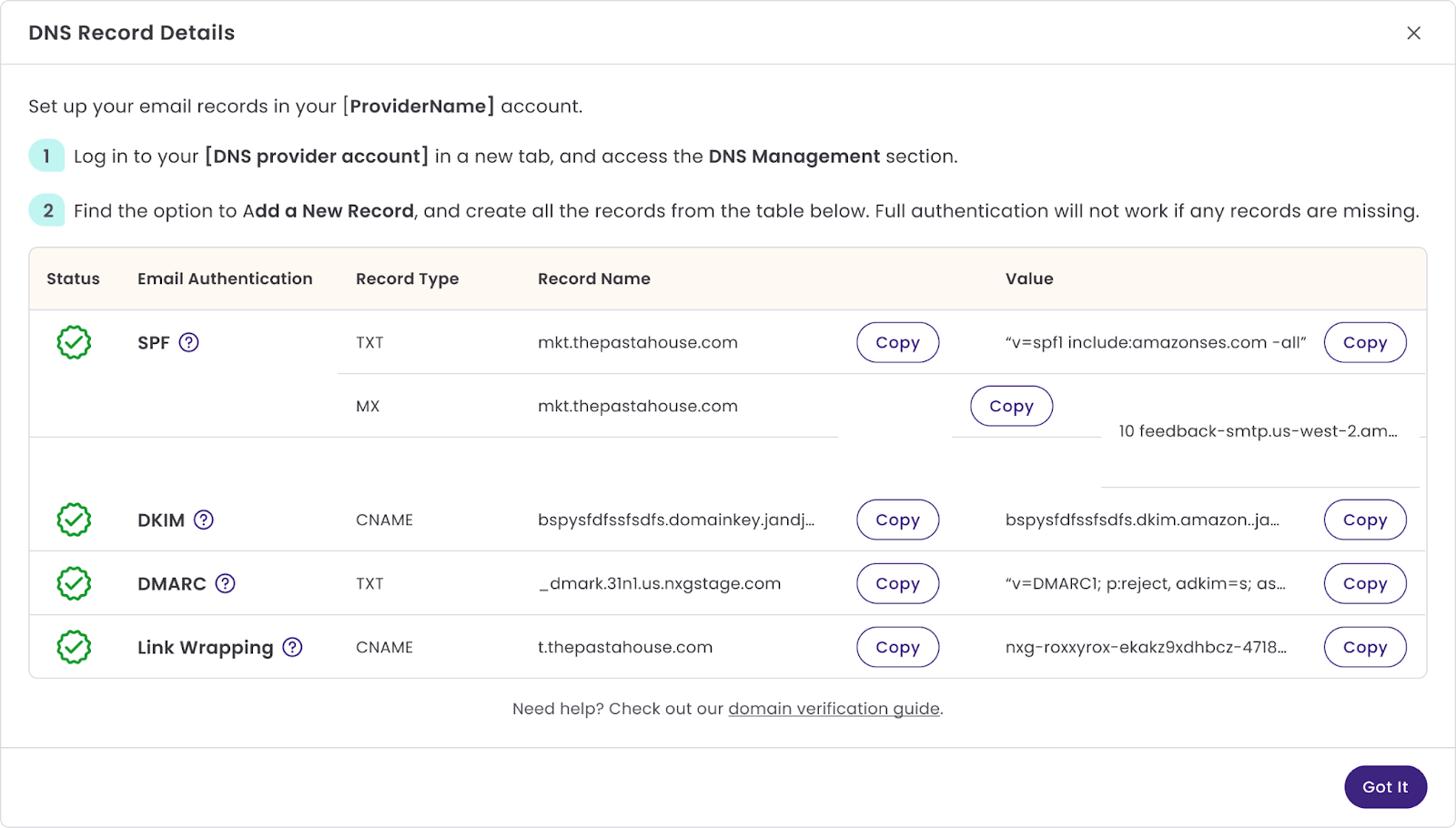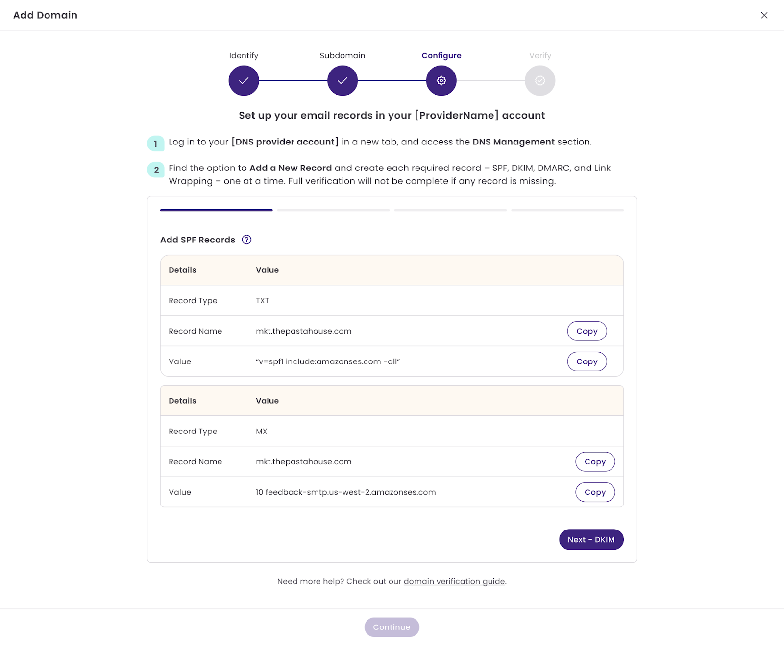 What’s new: You can now authenticate your domain using either our standard NS record method or the traditional SPF, DKIM, and DMARC records.