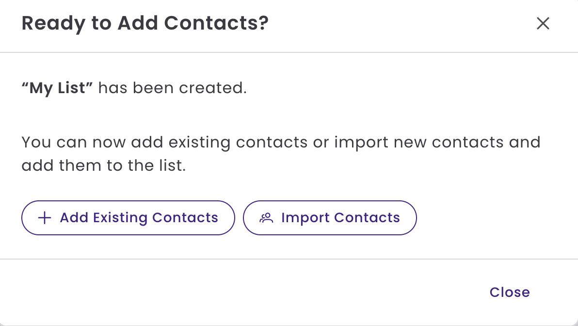 What’s new: We streamlined how you create and populate lists. Now, creating a list starts with naming it – then you’re guided to add or import contacts, with your new list pre-selected.