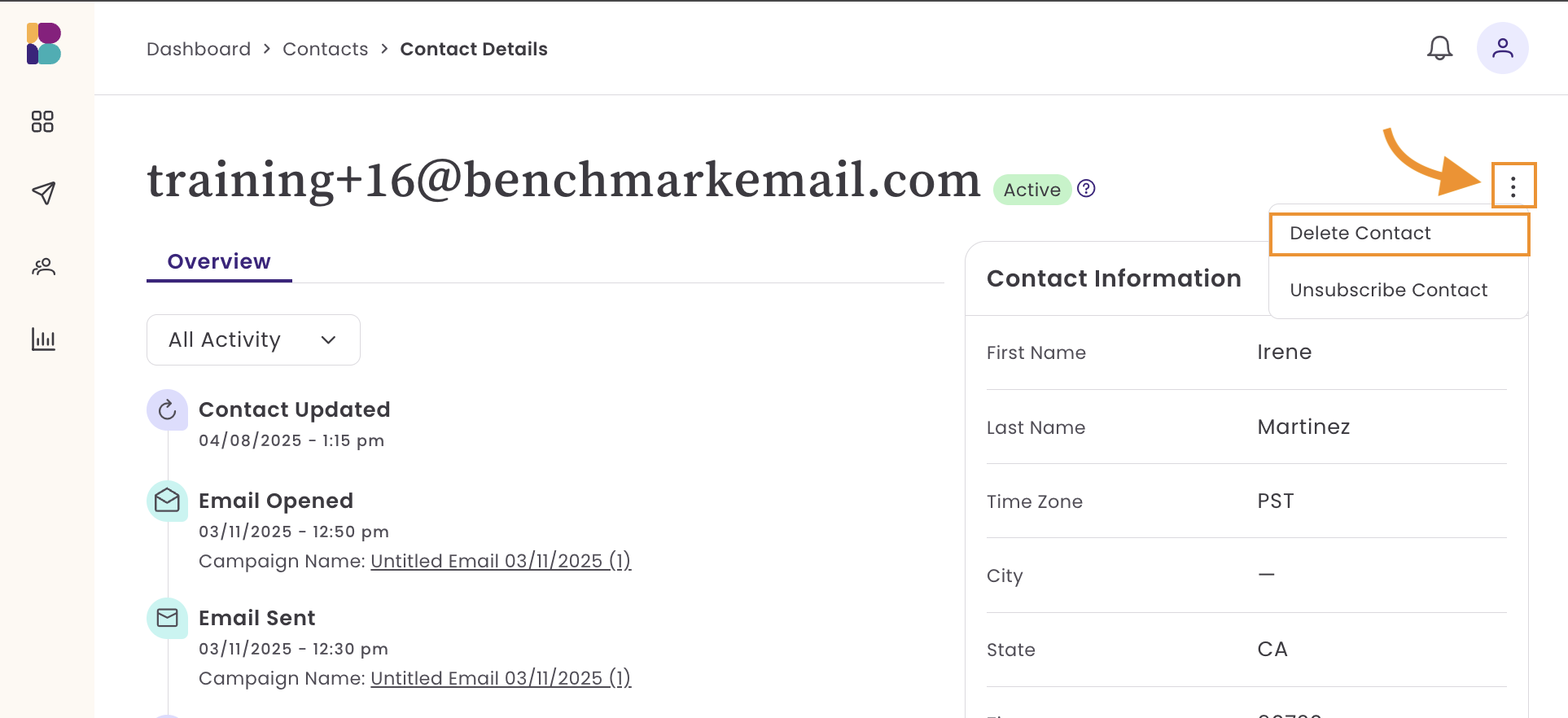 - All contact activity is removed when the contact is deleted from the account.