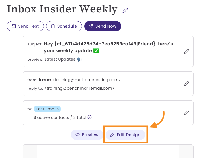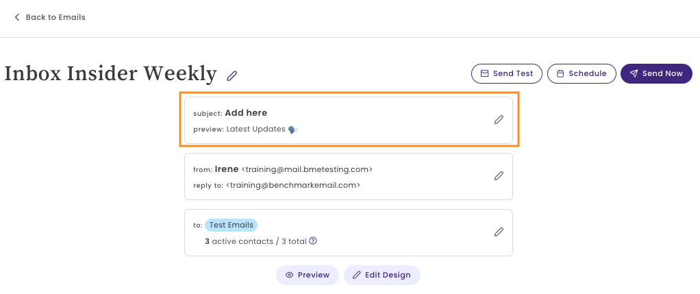 - Test Emails do not display the personalized data. To test the functionality, we recommend creating a contact list with email addresses that you can use for testing purposes.