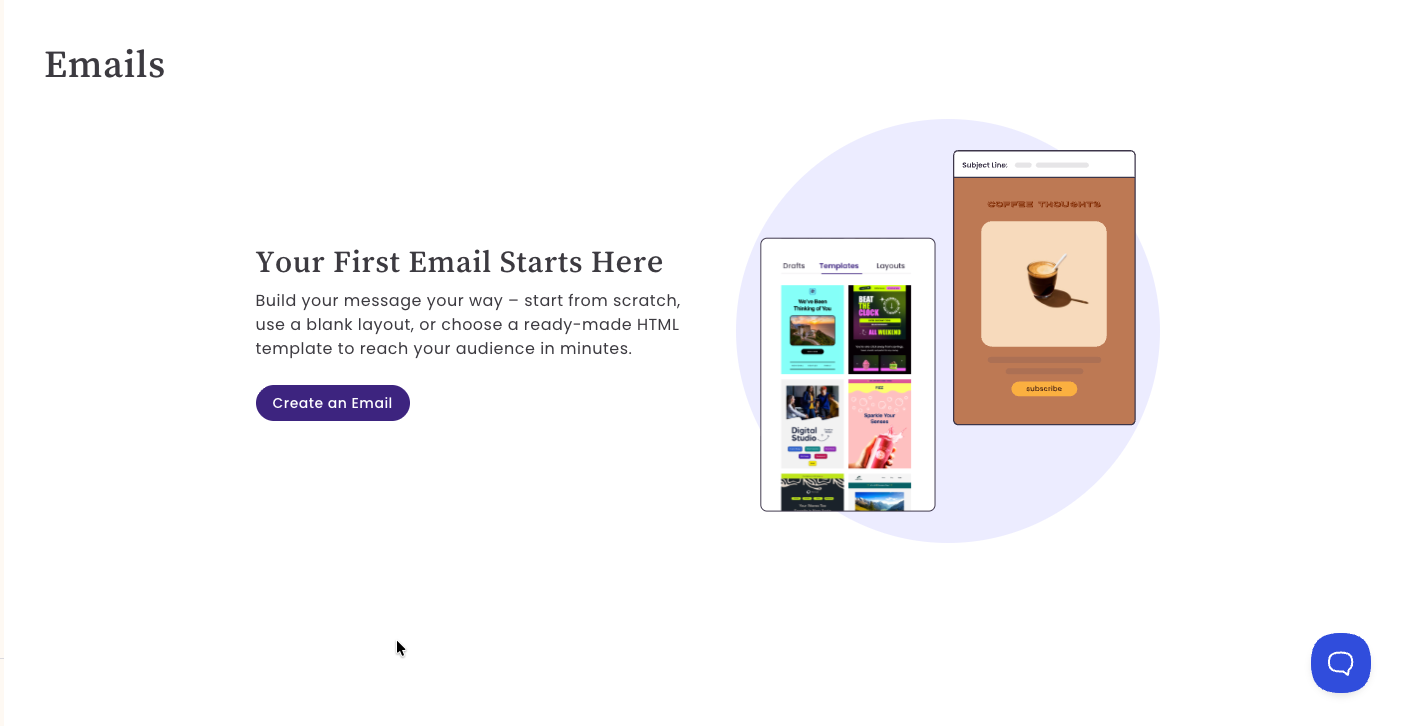 Richer empty states – refreshed imagery and clearer explanations in Lists, Tags, Emails, and Reports help new users understand what each feature does and how to get started.