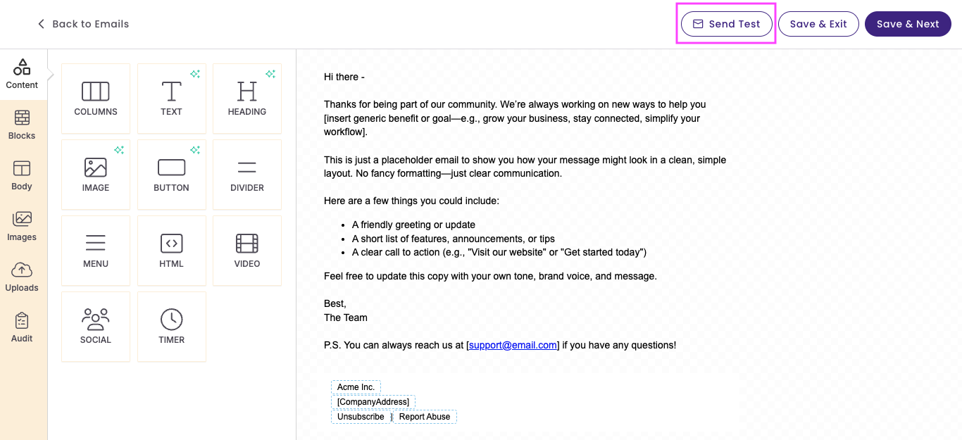 You can now send test emails even if parts of the email checklist aren’t fully completed. Plus, test sends are now available directly inside the email builder.
