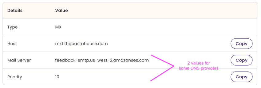 Some DNS providers require MX records to be entered in two separate fields, while others display them as a single value. Benchmark now automatically splits MX records into the correct format.