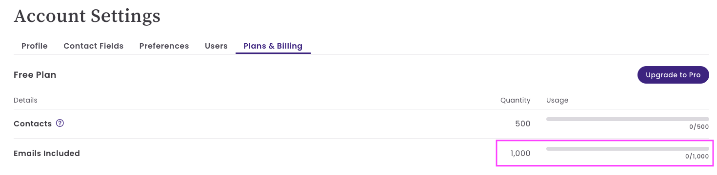 Plans & Billing now correctly displays send limits and usage for customers sending from shared domains.