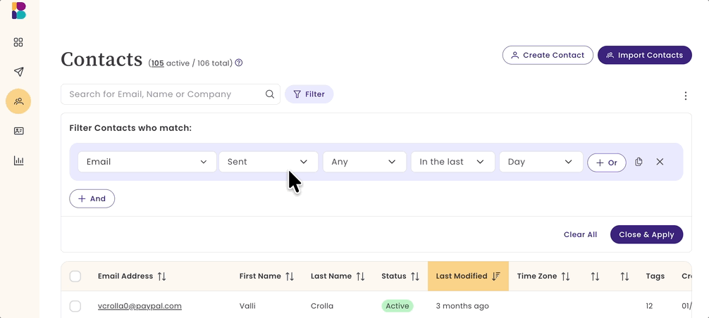 Maintaining an up-to-date contact list can help keep bounces low and can prevent your email delivery from being affected.