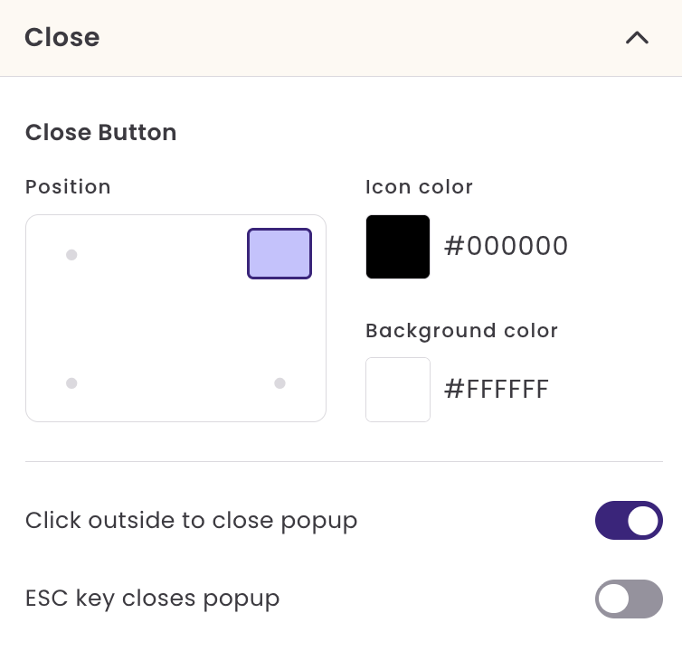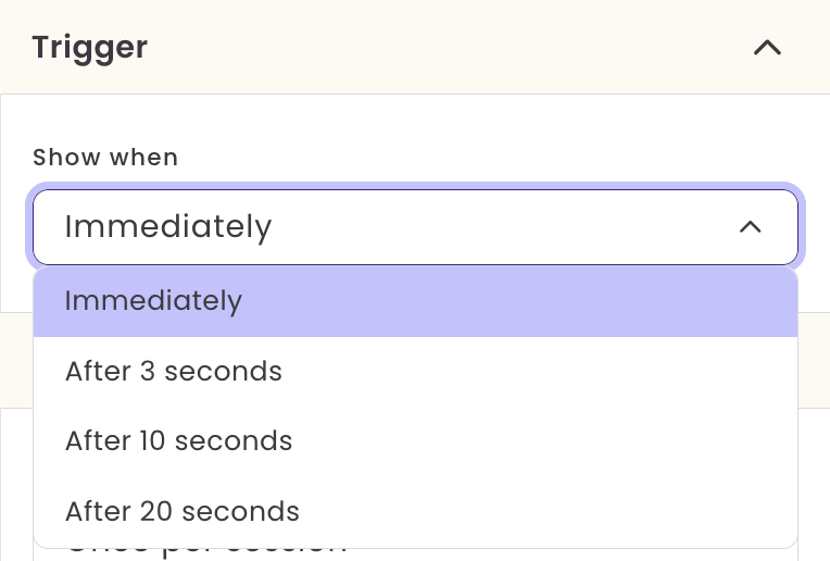 Trigger Set when the popup appears (e.g., after a delay or immediately on page load) |