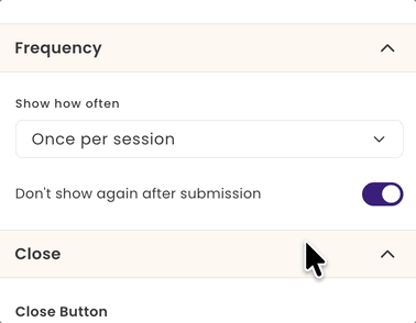 You can control display frequency, including showing it on every visit, once per session, or once within a set number of days.
