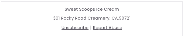 By default, your email includes an Unsubscribe and Report Abuse link in the email footer.