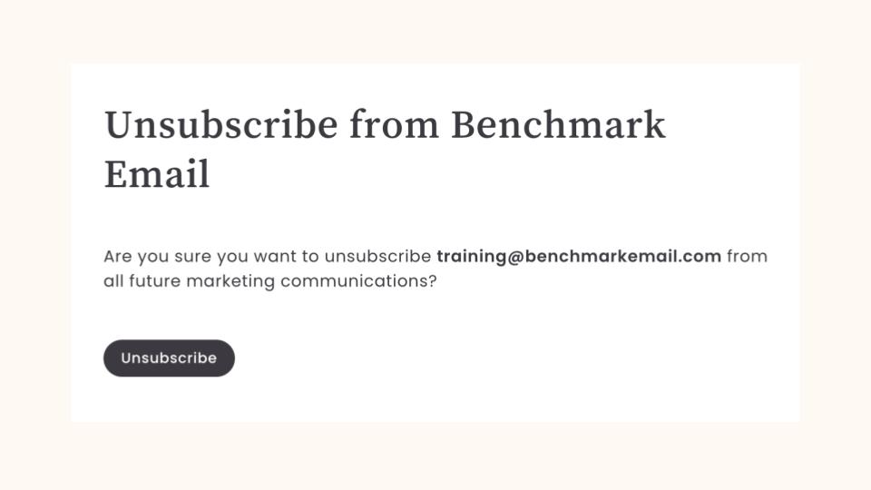 When a contact unsubscribes, they no longer wish to receive emails from you or your company. At Benchmark, all emails include an Unsubscribe link that complies with industry standards and anti-spam regulations. This link is mandatory and cannot be removed or modified.